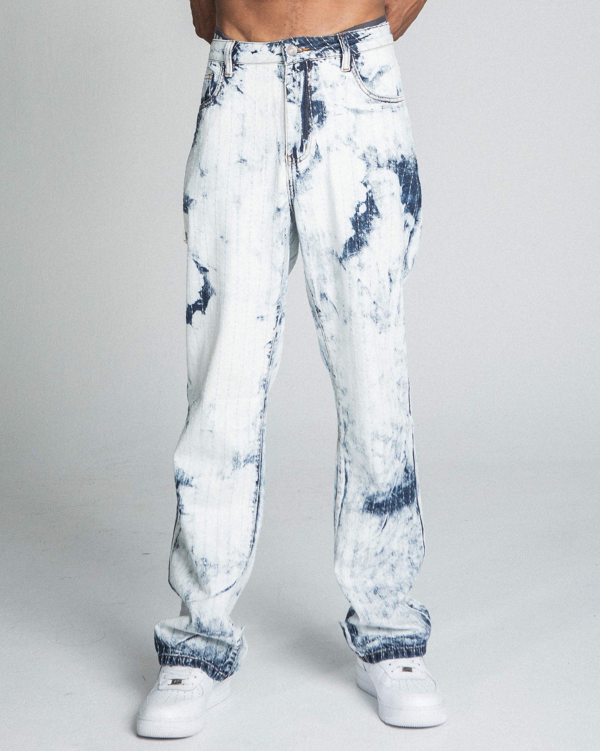 AJ01L-1 VAQUEROS ANCHOS CON LÍNEA DE HILO TEÑIDA AZUL OSCURO/BLANCO